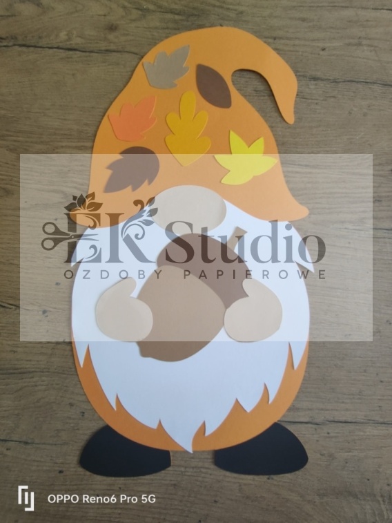 Krasnal 42 cm. Poszczególne elementy cięte maszynowo, ręcznie klejone.
