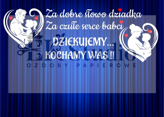 - Napis - Za dore słowo dziadka - 2m (szer.) x 21cm (wys.) - Litera Z - 18cm, literki typu a, o, e, m - 10cm