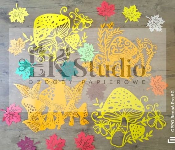 - jesienne kolory (odcienie zieleni, brązu, czerwieni, pomarańczy, żółtego)